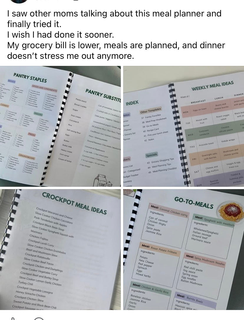 ✅ This planner does the organizing FOR you. The meal ideas are already there. The templates are already formatted. You just fill in the blanks. If you can make a grocery list, you can use this.