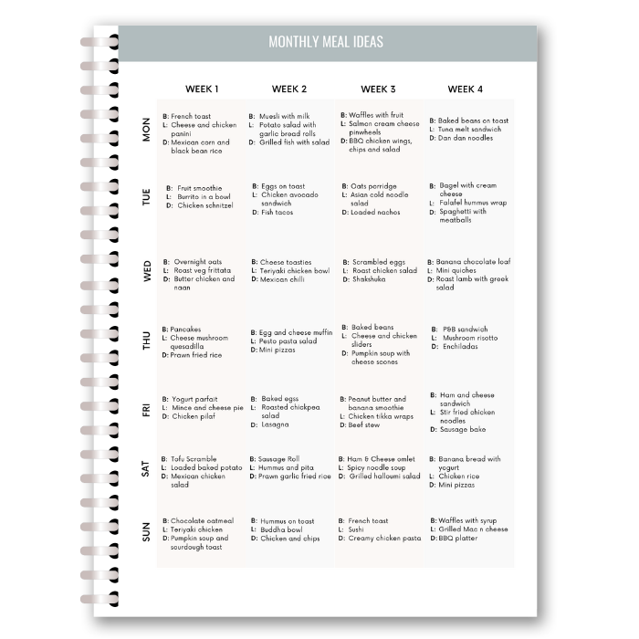 - Monthly Meal Ideas